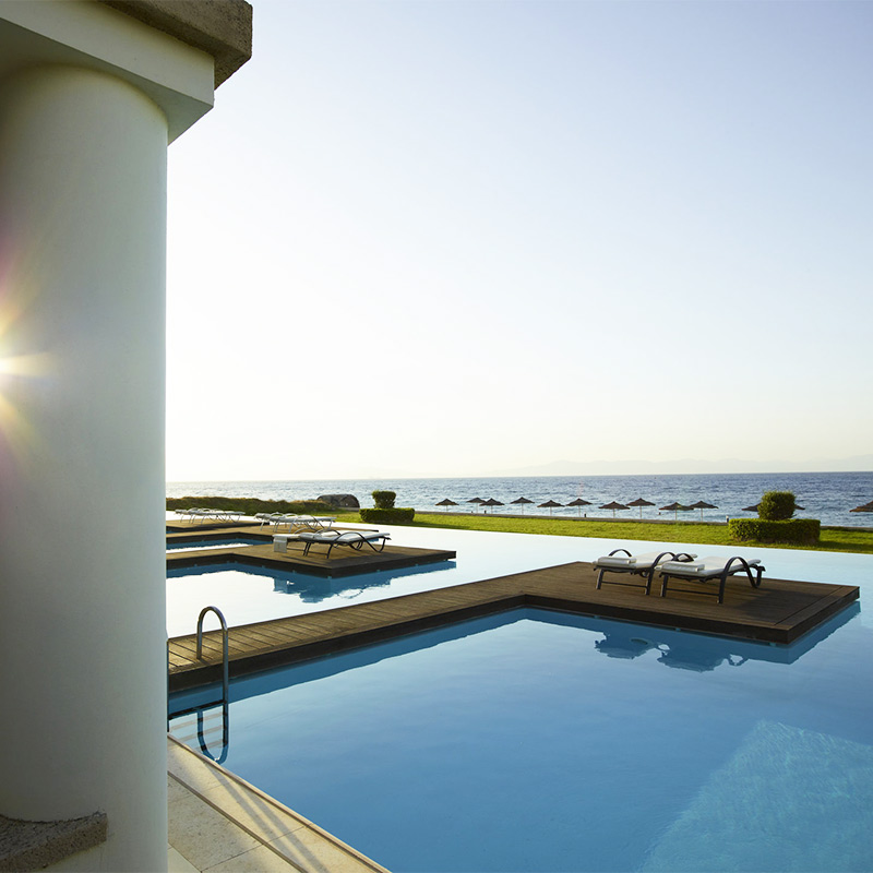 The Ixian Grand & All Suites 5* est un hôtel réservé aux adultes, idéalement situé en bord de mer sur la plage dIxia, sur la côte ouest de lîle de Rhodes. Offrant un cadre élégant et apaisant, il constitue une adresse idéale pour se ressourcer face à la mer Égée et profiter pleinement du soleil grec. Réception 24h/24, Wi-Fi gratuit, service de blanchisserie, serviettes de piscine mises à disposition, boutique, service médical* (sur demande), location de motos / voitures*.